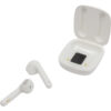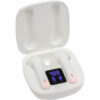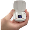 Medidas: 5,5 cm x 5 cm x 2,5 cm. (medida de la caja) 45 mm (auriculares). Plástico ABS. Auriculares bluetooth con imán, se conectan al celular de forma inalámbrica. Los auriculares cuentan con función touch en cada costado de los audifonos (izquierdo y derecho) para funciones de encendido, apagado, avance, retroceso, reproducción y pausar musica. Así como también para las funciones de responder, rechazar o finalizar una llamada. Estuche que permite cargar la batería de los auriculares. Indicador de batería del estuche. Base de carga 300 MAH . Auriculares: 30mAh Bluetooth V5.0. Rango de alcance 10 metros. Tiempo de reproduccion autónomo 3 horas aprox. Tiempo de carga de la batería 1 hora. Cable de carga USB tipo C. Duración de la batería en modo stand by: 40 hs.