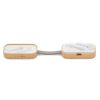 Auriculares inalámbricos con estuche de carga y micrófono incorporado. Posee tecnología bluetooth 5.0. La capacidad de carga es de 300mA y su duración en funcionamiento es de 3-5 horas seguidas. Estuche fabricado en ABS, bamboo y silicona gris, incluye cable. Medidas: 9,5 x 3,5 x 3,5 cm. ReUseMe.