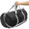Medidas: Ø28 x 55 cm. Capacidad 68 litros. Poliester 600D. Bolso deportivo con espacioso compartimento principal con cierre, 2 asas, correa ajustable.