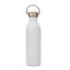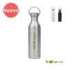 Sport Bottle reutilizable de acero inoxidable AISI 304, con tapa rosca de bambú y gancho de agarre. Producto aprobado por el I.N.A.L. para el contacto con alimentos. Producto libre de BPA. Medidas: 25 cm x Ø 7 cm. Capacidad: 700 ml. ReUseMe.