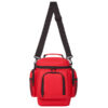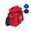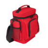 Cooler tipo morral, confeccionado en tela Nylon 600D. Tiene interior térmico forrado en aluminio, Cuenta con un compartimiento principal , 3 bolsillos con cierre. Medidas: 20 x 27 x 16 cm; Capacidad: 7 Lts.