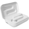 6,8 x 4,4 x 2 cm. (medida de la caja) 4 x 0,8 cm (auriculares). Plástico ABS. Auriculares bluetooth, se conectan al celular de forma inalámbrica. Los auriculares cuentan con función touch en cada costado de los audifonos (izquierdo y derecho) para funciones de avance, retroceso, reproducción y pausar musica. Así como también para las funciones de tomar y finalizar una llamada. Estuche que permite cargar la batería de los auriculares. Indicador de batería. Duración de la carga en inactividad: 200 horas. Tiempo de reproduccion autónomo 3 horas aprox. Batería de litio. Cable de carga tipo C. Logo impreso en Estuche.