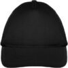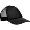 Gorra trucker 5 gajos. Toda Negra. Parte trasera con tela red de color. Ajuste con broche plástico. Seis costuras 17,5 x 7,5 cm.