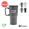 Jarro térmico con mango, realizado en acero inoxidable, polipropileno y AS, con tapa transparente cristal clear con cierre. Incluye base antideslizante. Producto libre de BPA. Producto aprobado por el I.N.A.L. para el contacto con alimentos. Medidas: 17,5 cm x Ø 8.7 cm. Capacidad: 600 ml. Pampero. Su Logo impreso sin cargo.