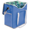 Medidas: 36,5 x 33 x 31 cm. Capacidad 37 litros. Poliéster. 600D Lonchera térmica con recubrimiento interior metalizado. Un bolsillo frontal y dos bolsillos laterales de red. Correa tipo bandolera y dos manijas reforzadas con cierre de velcro. Capacidad hasta 6 botellas de 2,5 lt. Logo impreso a un color sin cargo al frente.