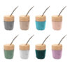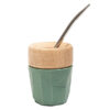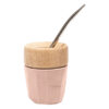 Mate de madera de algarrobo con funda de silicona facetada. Surtido de colores Con bombilla de acero inoxidable. Logo grabado laser sobre madera. Pedido Minimo: 35 Unidades