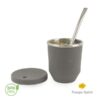 Mate realizado en acero inoxidable, recubierto en silicona para facilitar su agarre. Incluye bombilla de acero inoxidable y una tapa de silicona para facilitar el transporte del mate y evitar derrames de yerba. Producto libre de BPA, aprobado por el INAL. Medidas: Altura: 9 cm; Diámetro: 8 cm. Pampa Spirit.