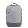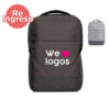 Mochila de Polyester con compartimento principal que incluye porta laptop. Compartimento secundario con organizador. Bolsillos laterales. Espalda y manijas acolchadas. Refuerzo para cargas pesadas, cierre con zip antideslizante, cierres invertidos. Medidas: 45 x 31,5 x 9 cm. Laptop: 17”. Capacidad: 15 Lts.