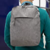Medida: 34 x 46 x 12 cm. Capacidad 14 L. Poliéster 300 D. Mochila color gris. Compartimento con espacio para notebook de hasta 15 pulgadas. En el frente bolsillo con cierre frontal y detalle de tira cierres de goma. Espalda y correas acolchonadas. Dandole valor a nuestra propia industria, decidimos desarrollar este producto localmente.