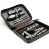 Práctico estuche contenedor de cuero ecológico con cierre, zipper haciendo juego. Incluye: destornillador (plano y phillips), destornillador imantado de 9 puntas intercambiables, pinza para tomar pequeños objetos, adaptador, alargue, 4 tubos. Medida estuche abierto: 25.5 x 15 cm. Medida estuche cerrado: 10.5 x 15 x 4,5 cm.