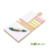 Libreta realizada en Cartón reciclado con set de notas adhesivas. Incluye bolígrafo pulsador con clip. Medidas cerrado: 9 x 10,5 cm. Re use me .