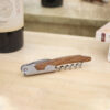 Medida: 11,6 cm. Acero inoxidable. Peso: 68g. Abridor de botellas de vino en acero inoxidable con mango de madera en color natural. Accesorios incorporados: sacacorchos, navaja y destapador. Presentación en caja de regalo.